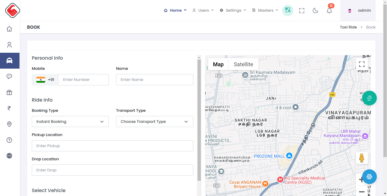 The Dispatcher Module enables admins to manage ride bookings directly through the panel. Dispatchers can select a pickup and drop-off location for the ride and assign a driver manually. This feature allows for more precise control over the ride scheduling and driver assignment, ensuring efficient ride management.