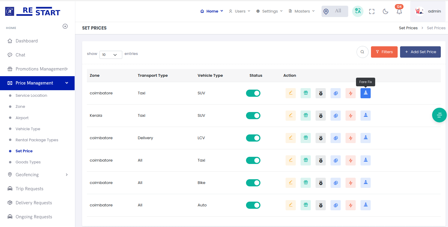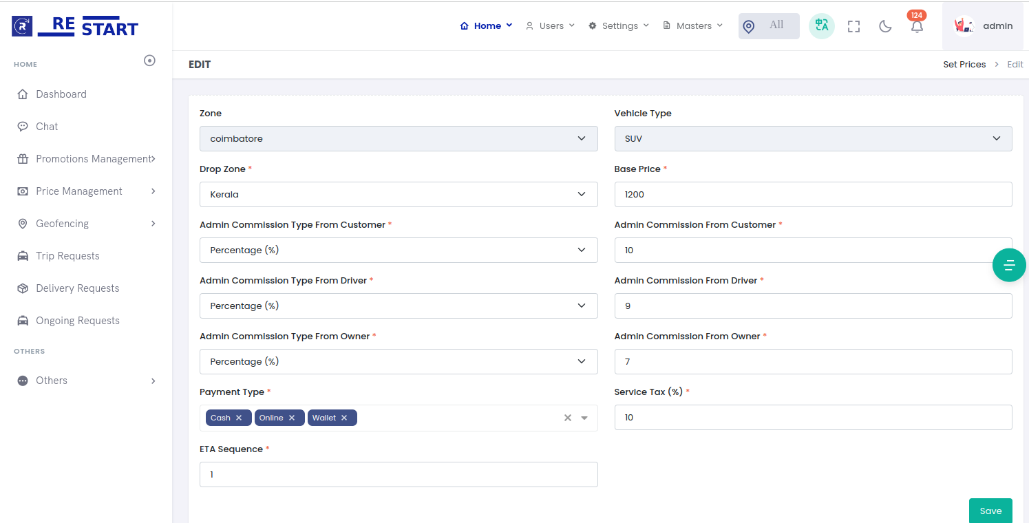 Price Management is the foundational setup for managing the application, allowing you to configure service locations, zones, vehicle types, goods types, subscriptions, and driver incentives. Each of these options is essential for tailoring your service offerings, managing users and drivers, and setting up pricing models across different regions and service types.