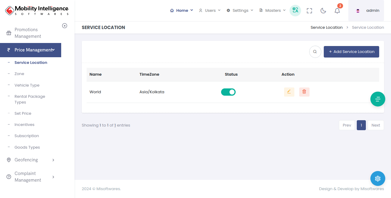 - Service Location: Define and manage service areas where your application will be available. Set unique currencies and time zones for each location.